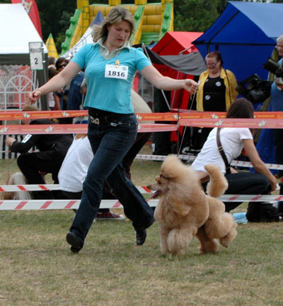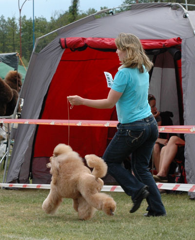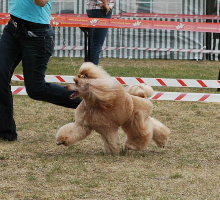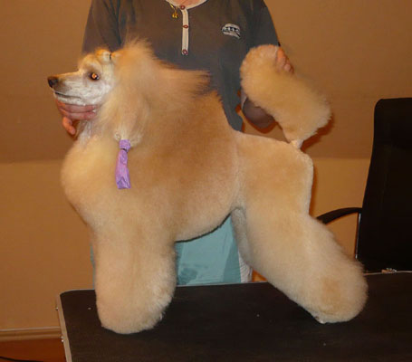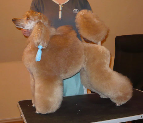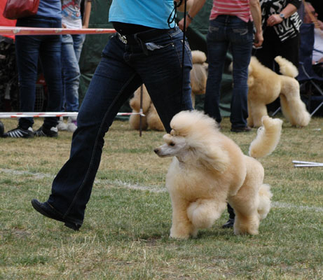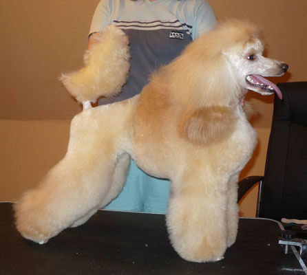 That's the way Lilli looks like when she is fresh groomed, just after grooming. That was last year before Melsungen, the DPK Winner Show where she became DPK Junior Winner and beats silver and red Junior female and became Best Junior bitch in Breed. She was 13 month old. http://www.apricosen.de/P1060784%20b This is Lilli just after grooming before Szczecin (Poland). She won Res- CACIB after Amizou. Because Amizou is already Intern. Champion, Lilli will get the CACIB. For Innsbruck I made the body lighter than on this picture. Amizou was overmore BOB and Best Poodle in Group! And these are pictures directly from Stettin: http://www.apricosen.de/Stettin%2018.06.11%20480%20b http://www.apricosen.de/Stettin%2018.06.11%20481%20b You can see she still looked great, but not as precise as on the table and coat looked much less than on the table. That's why I let her so much hair. Too much hair on the table, but next day at the show it's OK. Grooming Amizou before Stettin: http://www.apricosen.de/P1060794%20b And Amizou at the show: http://www.apricosen.de/Stettin%2018.06.11%20209%20b http://www.apricosen.de/Stettin%2018.06.11%20212%20b http://www.apricosen.de/Stettin%2018.06.11%20211%20b http://www.apricosen.de/Stettin%2018.06.11%20214%20b I really hope that everything was just a missunderstanding by language. Janett |