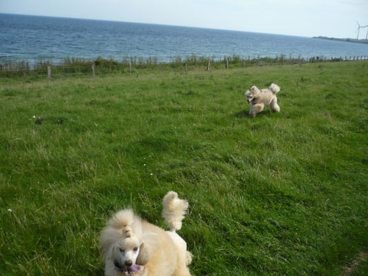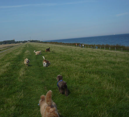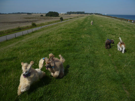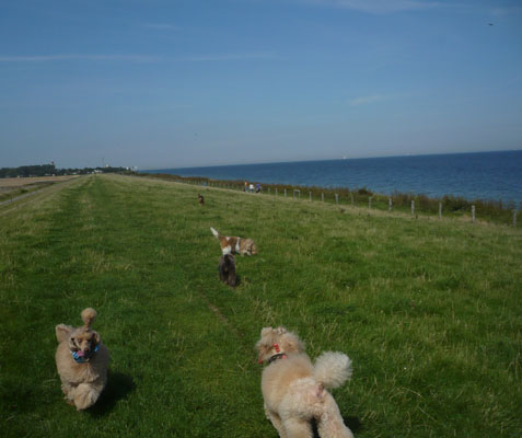 Holidays at dike at island "Fehmarn" with happy poodles: