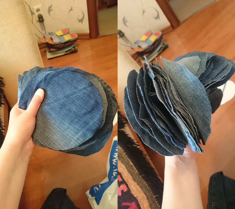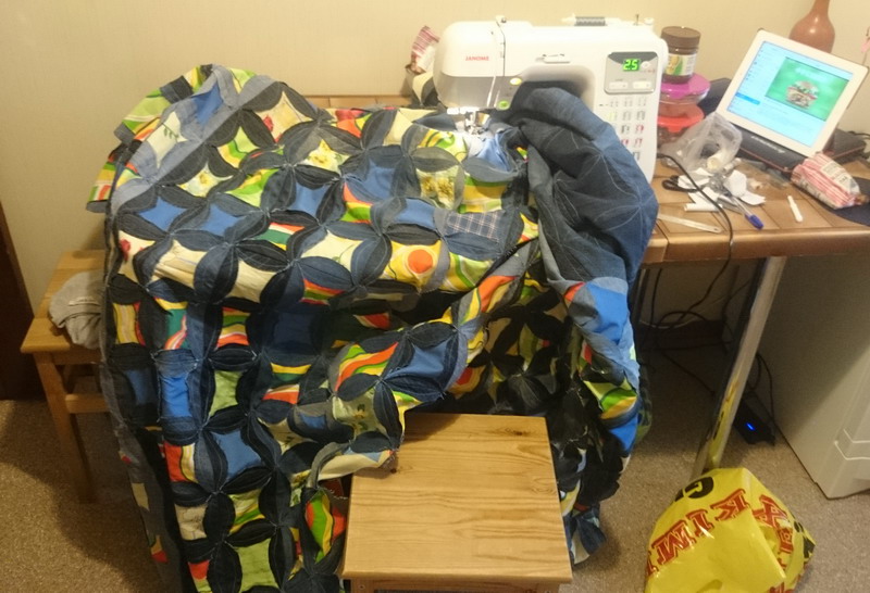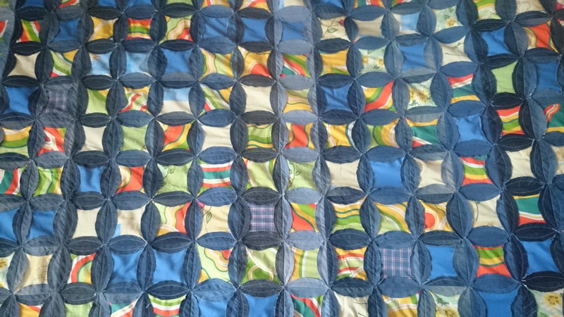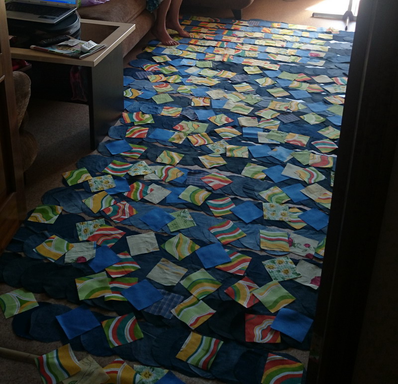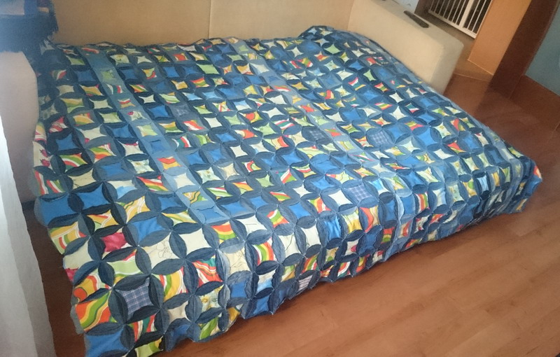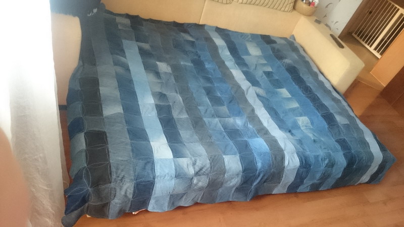 Я наконец-то закончила шить покрывало из старых джинсов.
