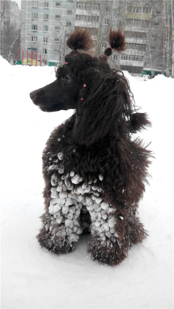 Любимое зимнее занятие пуделистов - лепка снеговика из собаки! стадия первая => стадия вторая..)
