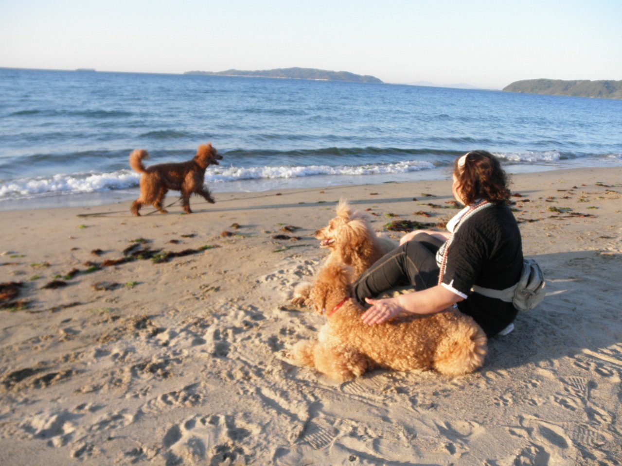 Собаки набегались, Андромеда так вообще, почти искупалась (всё что-то в воде привлекало её внимание).