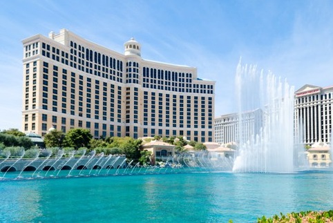 Красивый отель Bellagio, расположен в Лас-Вегасе городе игр и развлечений. Это один из самых великолепных фонтанов в мире. В будние дни отель Bellagio запускает фонтан каждые полчаса с 3 часов дня до 12 вечера. По выходным с 00.00 вечера до 12.00 утра. Оценочная стоимость фонтана в пределах 40 миллионов $ США. Они содержат 1200 сопел и 8000 метров труб, и может снимать до 20 416 галлонов воды в воздухе.