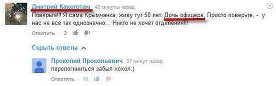 И еще, мне не понятна ваша ирония и уничижительное отношение к "званию" - "дочь офицера". Я просто предупреждаю, что это унижает и меня и моего отца. Что конкретно я сделала вам? Чем ухудшила вашу жизнь? тем что не скачу радостно от того, что нашим военным приходится воевать? Тем, что я не считаю, что у нас все прекрасно? Тем, что имею мнение отличное от вашего? Или вы просто завидуете, потому, что своим отцом вы не можете гордиться?