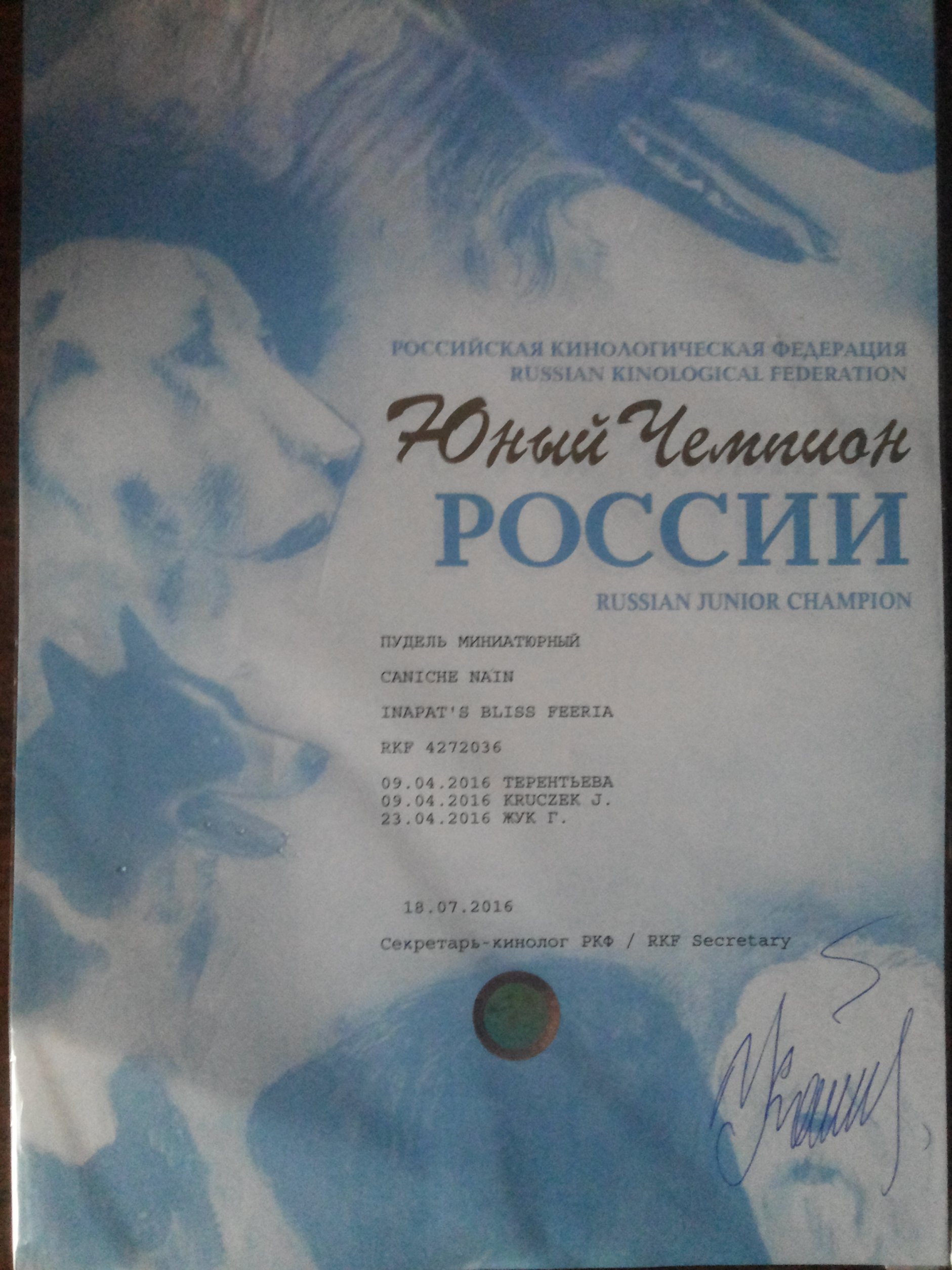 , Добрый день!Фея теперь официально ЮНЫЙ ЧЕМПИОН РОССИИ!!!
