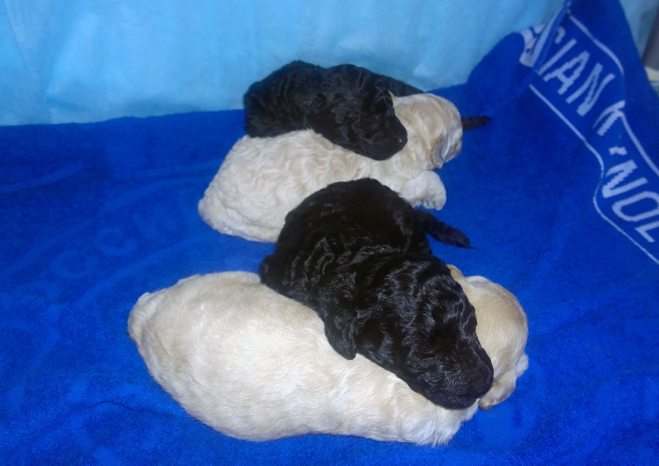 Щенки. Белые и черные малые пудели. Geja Niks