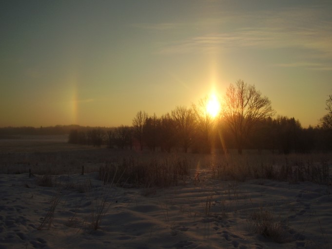 вот что сегодня утром получилось. Сразу было все, и снежная мелкая сыпь, и туман, и солнце и радуга в конце аллеи :)