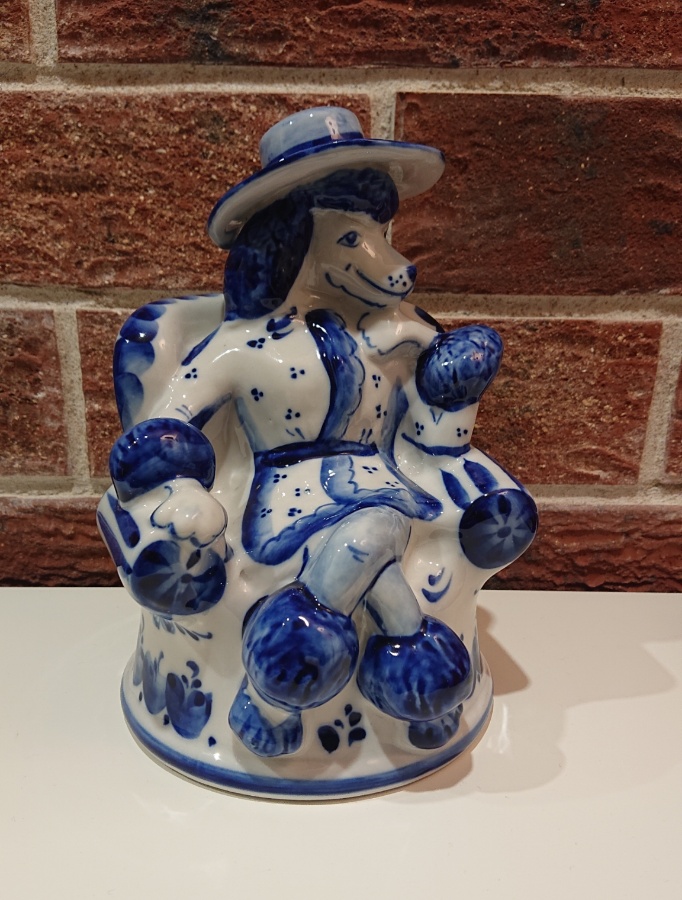 Пудель гжель, редкая статуэтка. Больше не изготавливают(ГжельГалакт ка). Высота 18,5 см.