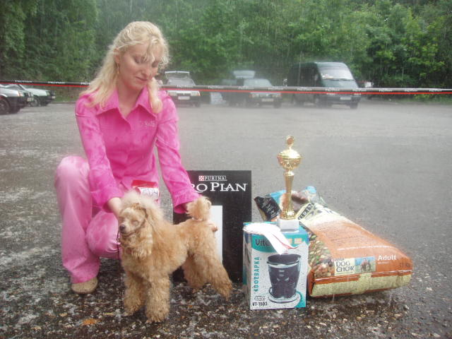 Пудель-шоу боец в любую погоду , даже под проливным ливнем!