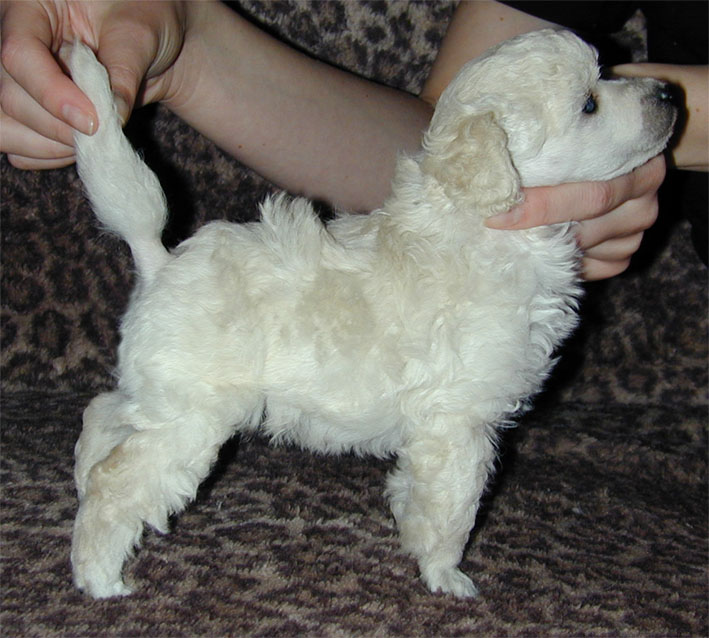 А вот так мы стоим в возрасте 1 мес. Еще не стриженные.