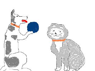 Собака и кошка подружились! Кошка от домашней еды стала очень пушистой)))) А собака пришла в форму, т.к. они оба очень любили футбол!