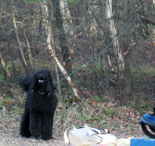 А это Лола кричит, пристегнутая к забору: "Ну, когда уже меня пустят побегать-то?!!!"... :)