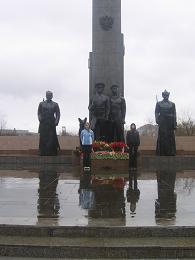 Вот почти весь памятник нашим погранцам!У нас была неприятная погода...Очень жаль ,что холод и дождь подпортил праздничное настроение стареньким ветеранам.