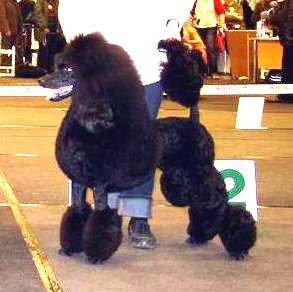 "Стрижка "Английское седло" - при этом морду, горло, лапы, передние ноги и основание хвоста выбривают, оставляя "буфы" на перед- них конечностях и "помпон" на конце хвоста. Задняя часть покрыта короткой "попоной", за исключением изогнутой обритой области на каждом боку и двух выбритых полос на задних конечностях. Лапы и конечности выше "буфа" должны быть тщательно выбриты машинкой. На остальных частях тела оставляют длинную шерсть."