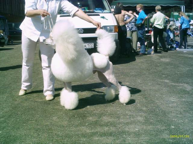 большие: ANSVEL TENTATION DE L'AMORE класс щенков ПК,ЛЩ, второе место в конкурсе Лучший щенок выставки KOZA NOSTRA CW, CAC, CACIB GOLDSTANDART ARISTOKRAT SHOW CW, CAC, CACIB малые SOLTAR'S GOT TO BE FUNKY CW, CAC, CACIB, BOB VLASTITELNITSA TMY IZ YANTARNOY STRANY CW, CAC, RCACIB MANIFIQUE D'ARGEANT SHERRY LA REINE DE VICTORIE CW, CAC, CACIB карлики DEL ZARZOSO MERENGUE CW, CAC, CACIB TUTSY (silver) CW, CAC тои TRES BELL IZ SEVERNOY VENEZII CW, CAC, RCACIB ВЕНДЕТТА ИЗ ЧБК CW,CAC, CACIB результаты за 20.07 большие классический окрас ALEX DAR BELAYA KORONA CAC, CACIB, BOB ANSWEL TENTATION DE L'AMORE CW, BP KOZA NOSTRA CW, CAC, CACIB современный окрас GOLDSTANDART ARISTOKRAT SHOW CW, CAC, CACIB, BOB малые, открытый класс VLASTITELNITSA TMY IZ YANTARNOY STRANY CW, CAC, CACIB, BOB SOLTAR'S GOT TO BE FANKY exellent 2 современный окрас MANIFIQUE D'ARGEANT SHERRY LA REINE DE VICTORIE CW, CAC, CACIB карлики классика DEL ZARZOSO MERENGUE CW, CAC, CACIB, BOB INAPAT'S BROWN LACE CW, JCAC современный окрас TUTSY CW, CAC, CACIB тои TRES-BELL IZ SEVERNOY IMPERII CW, CAC, CACIB, BOB, BIG-III 19 июля. Эксперт - ЛЮДМИЛА СМИРНОВА (Россия). Пудель большой классического окраса. Кобели. Класс Чемпионов: ALEX DAR BELAYA KORONA - 3 отл. DANVIK MISTER EXTREEM - CAC, CACIB, BOB. Попал в первый отбор девятки. Но белый большой и дождь, кто это видел, тот знает. Надо было видеть еще выражение его морды, когда его пытались показать под дождем. ELENSIS YSTAS - 2 отл., R.CACIB Суки. Щенки: ANSVEL TENTATION DE L'AMORE класс щенков ПК,ЛЩ, второе место в конкурсе Лучший щенок выставки. МОИ ОГРОМНЫЕ ПОЗДРАВЛЕНИЯ ЗАВОДЧИКАМ И ВЛАДЕЛЬЦАМ!! мОЛОДЦЫ!!! Класс Чемпионов: KOZA NOSTRA CW, CAC, CACIB. Пока у меня есть только ее фотка. И там, как всегда, она поражает своей необыкновенной женственностью и огромным количеством сохраненной после щенков шерсти Пудель большой современного окраса. Класс Чемпионов: GOLDSTANDART ARISTOKRAT SHOW CW, CAC, CACIB,ВОВ 20 июля. Эксперт - MIROSLAW REDLICKI (Польша). Пудель большой классического окраса. Кобели. Класс Чемпионов: ALEX DAR BELAYA KORONA - CAC, CACIB, BOB DANVIK MISTER EXTREEM - 2 отл., R.CACIB ELENSIS YSTAS - 3 отл. Суки. Щенки: ANSVEL TREMENDOUS AMBITION ПК,ЛЩ. Еще раз мои огромные поздравления!!! Класс Чемпионов: KOZA NOSTRA CW, CAC, CACIB Пудель большой современного окраса. Класс Чемпионов: GOLDSTANDART ARISTOKRAT SHOW CW, CAC, CACIB,ВОВ карлики cовременные 19.07.08. Делис Серпантин - сука абрикосовая CW, CAC, CACIB,BOB Милки Лайн Вива Балтика - серебристая CW, CAC, R.CACIB Tutsy - серебристая CW, CAC тои Северный Фокстрот из Русского Двора - белый кобель CW, CAC, R.CACIB |