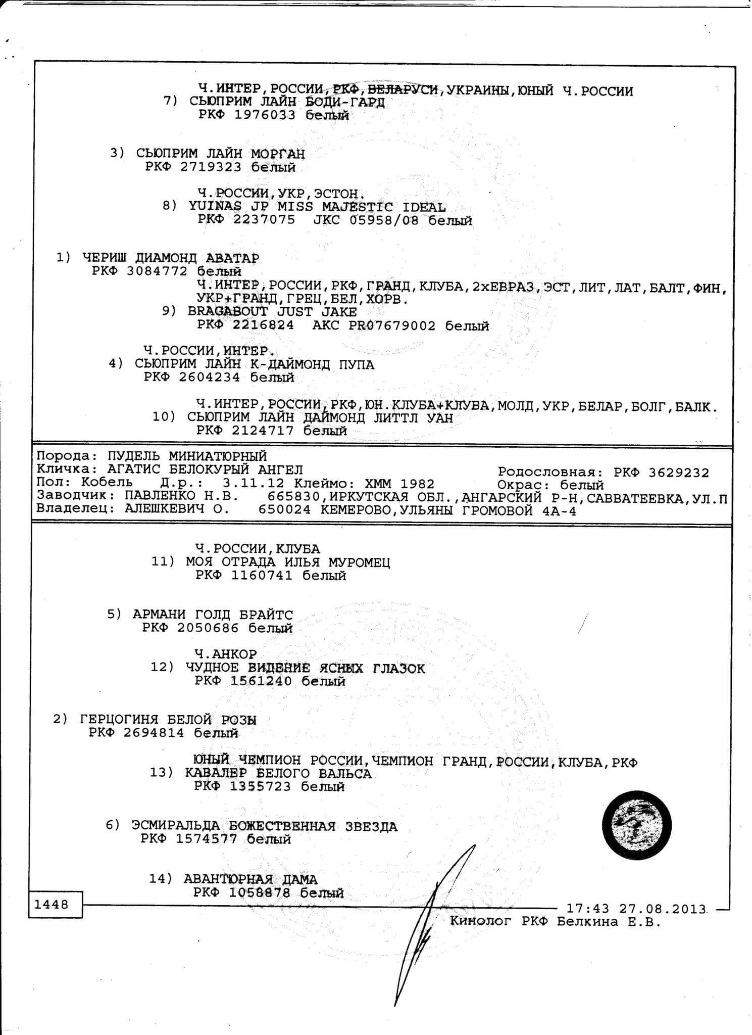 отец : ЮЧР ЧР ЮЧНКП Агатис Белокурый Ангел