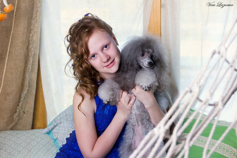 Нашу собаку по документам зовут Бьюти Бриллиантовая Бусинка и дома зовем Буся от Бусинка, она была самая маленькая в помете, действительно Бусинка, так что других вариантов даже не возникло. На фото с Буся со своей хозяйкой (другого фото под рукой нет): |