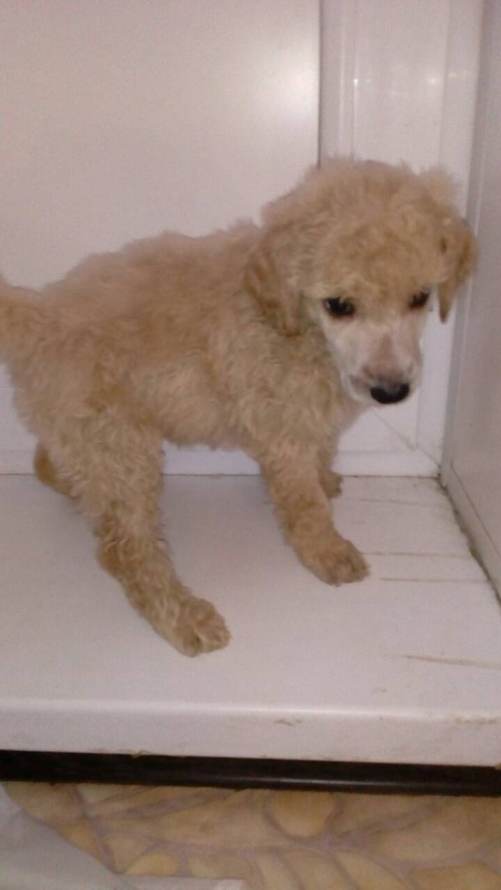 это девочка с красной ниточкой, в том что она будет красной это пока только мое предположение.... Пообщавшись с другими заводчиками, мне сказали что скорее всего или абрикос в лучшем случае, или после года а возможно и раньше перецветет в белый(((((((фото сейчас кину новое...