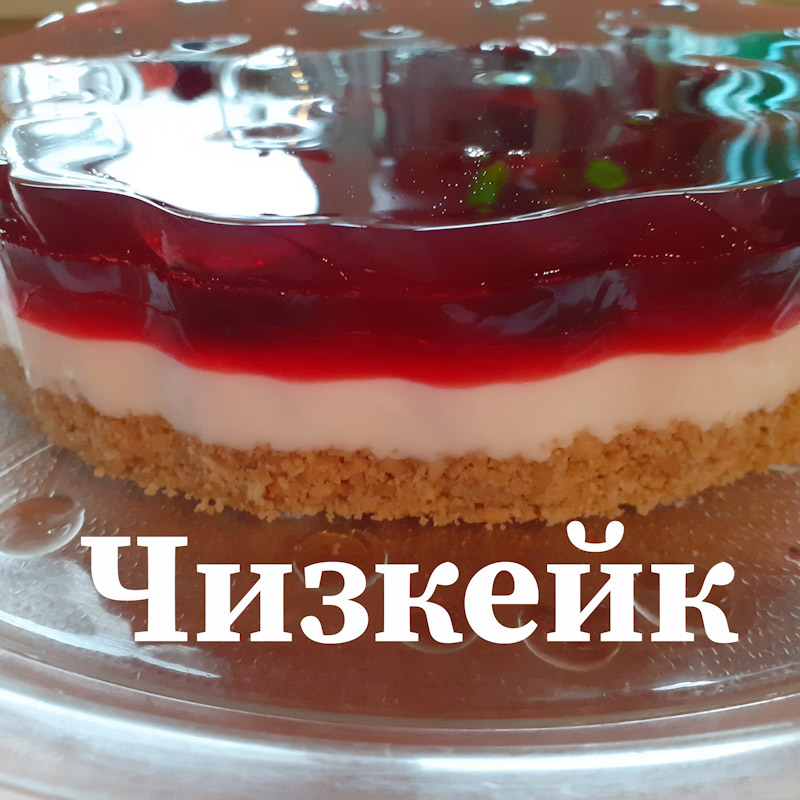 Нам понадобится: 1. Печенье - 200 гр. 2. Сливочное масло - 100 гр. 3. Творог - 250 гр. 4. Сметана - 250 гр. 5. Желатин - 30 гр. 6. Вишня - у меня была упаковка замороженной вишни, примерно 150 гр. Ушло на чизкейк. Вишню, если у вас тоже замороженная, достать заранее, переложить в дуршлаг . 7. Вишневый сок - 200 мл. 8. Сахар - 150 гр. 1. Желатин разделим на две равные части, по 15 грамм. И к каждой порции добавим по 30 мл. воды комнатной температуры. Перемешаем и уберем пока в сторону. 2. Печенье измельчаем в крошку. Можно это сделать при помощи блэндера, или переложить в целофановый пакет и раскатать скалкой до измельчения. 3. К печенью добавляем растопленное сливочное масло и тщательно перемешиваем. 4. Берем разъёмную форму. Если у вас , как и у меня, нет такой формы , то можете сделать кольцо желаемого диаметра из фольги, и зафиксировать скотчем с внешней стороны. Вот и форма готова!!!))) 5. На дно формы выкладываем плотным слоем печенье и убираем в холодильник для застывания. 6. Творог+сметана+сахар. Тщательно перемешиваем венчиком. Или взбиваем погружным блэндером или миксером. Желатин несколько секунд подогреваем в микроволновке, или распускаем на водяной бане, перемешиваем и тонкой струйкой, помешивая, вводим в творожно-сметанный крем. 7. Достаем форму из холодильника, аккуратно выкладываем крем на слой печенья, разравниваем и снова убираем в холод. 8. Когда крем застыл. Выкладываем вишню. 9. Греем несколько секунд в микроволновке вторую порцию желатина, и тонкой струйкой, помешивая вводим в вишневый сок. 10. Заливаем соком ягоды, очень медленно и аккуратно, чтобы ягодки оставались на своих местах)). Сок должен полностью закрывать вишню. 11. Убираем в холодильник для застывания! Вот и все. Наш легкий, вкусный и очень красивый чизкейк готов. Вы можете использовать любые другие ягоды, и другой сок. Можно вообще не использовать ягоды и фрукты. А просто третий слой сделать соком (не забывая добавить в него желатин, конечно же) ))) Фото смотрите ниже)) ВСЕМ ПРИЯТНОГО АППЕТИТА) Видео рецепт можете посмотреть на моем канале _______________________________________