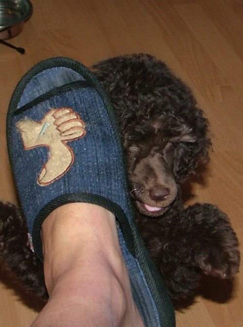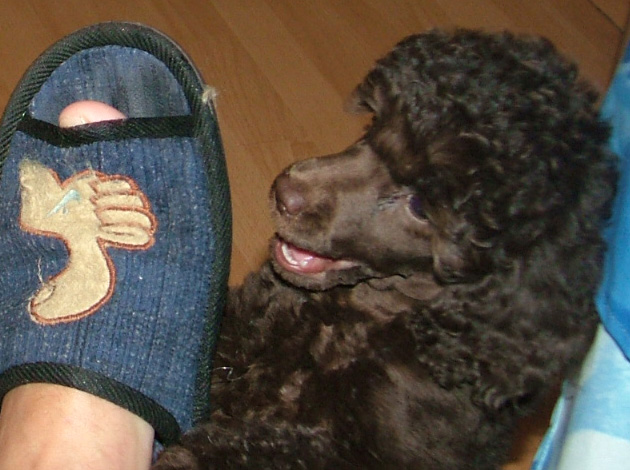 Гарфилд, а мы вчера ездили смотреть братика Вашего малыша. По-моему, братан (по-домашнему - Рокки) все-таки будет черным. Рокки в том же типе, что и Ваш. Фотографировали. Как фото будут - повешу в черной теме. pudelkino, тапочкоукротительница потрясающе очаровательна!! |