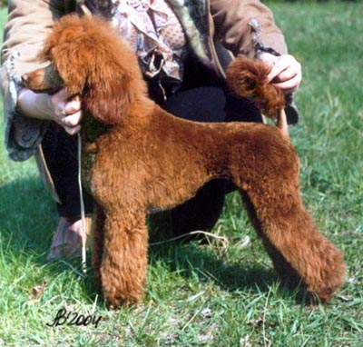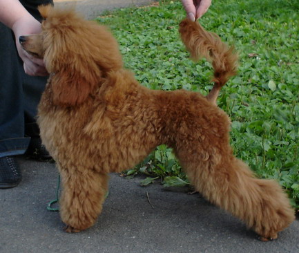 Таня! Киспас Барт Ланкастер Фаворит- это не моя собака. Его владельцы Михаил и Марина Ширгородские. Киспас был привезен из Швеции в 95 году, в 98 году он стал Чемпионом Мира и лучшим пуделем всемирной выставки (четвертое место в девятой группе). В 97 году вышел запрет на красных, и даже будучи Чемпионом Мира, он вязался не очень много. Бужан Солнечный Луч Грошик - владелец и заводчик Бутнева Жанна Николаевна, С.-Петербург, Очарование Юстас Янтарный Мальчик - разведение Ирины Лескиной, владелец Васильева Ирина, Москва. Аргументы в пользу утверждения красного окраса у меня те же, что и у Вики. А почему он должен быть запрещен? Восемь лет назад президент французского пудель-клуба мадам Брестишер запретила красный окрас под предлогом, что красные пудели в возрасте до полутора лет перецветают в грязно-кремовый цвет. "Однажды, когда красный окрас станет более стойким, он будет разрешен". Кажется, при этом было сказано что-то в таком духе. Предпосылок для того, чтобы красные пудели не только размножались, но еще и проходили какую-то селекцию на стойкость окраса, в то время казалось, не было никаких. Как уже отметила Вика,