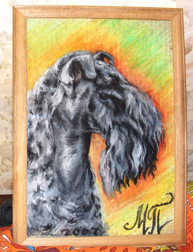 У нас с Катей тоже есть работы с др. породами. вот портрет коккера нарисован постелью .