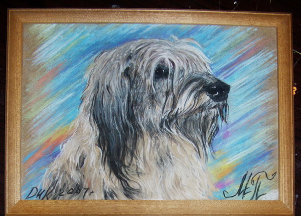 Ещё пастельный рисунок,но породу точно не помню,вроде выдровая гончая