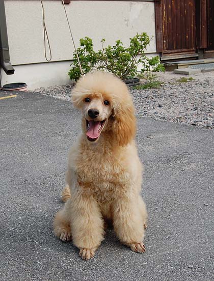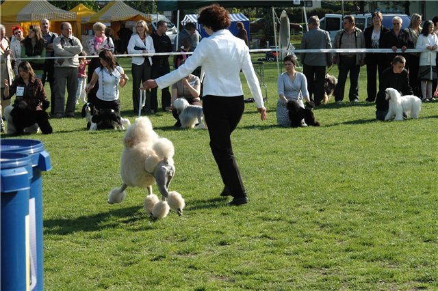 Я выставила свою собаку, полюбовалась на финских пуделей и щенков. Сделала тест своей малой черной Соньке на коленки. Тест надо заметить отличный! Благодаря Алле Игоревне я познакомилась с г-м Ханнелиусом и поупражнялась в разговорном английском)))))). Алла Игоревна, БОЛЬШОЕ спасибо за чудесно организованную поездку, моей благодарности нет границ. Теперь немного фотографий. Это малый абрикосовый кобель, возраст около 4-х месяцев of Hannelhill James Bond |