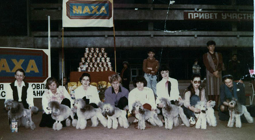 А это племенная группа Сильвер Коли.Сейчас смешно смотреть,но мы только учились ,правильно стрич и ставить собак.Конечно не у всех это получалось.