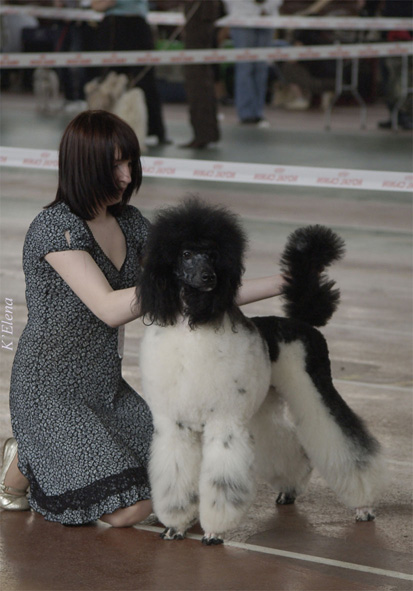 Ну, таварисчи - С презентацией окраса арлекин на выставке Дельта-Пал 12 апреля на стадоне им. Знаменских Вас! Кажеться это удалось - они всем понравились и выглядели весьма достойно. Их было пока только 5 - 3 миниатюры, 1 той и 1 большой, будем надеяться, что их будет больше. Отчитаюсь по своей - большой пудель, окраса арлекин Гвендолен Глориус Сувенир ( это наше официальное имя теперь, в переводе Мотылек/Бабочка Великолепный Сувенир - кажется так), в открытом классе на САС эксперт Ерусалимская, получила Чемпин РФЛС, САС, ЛС, ЛПП и прошла в Бест. На Монопродке эксперт Н.А. Масленникова, в открытом классе получила Победитель класса, КЧК, ЛПП и в сравнительном ринге на Лучший большой пудель заняла 4 место. Хендлер - Леночка - Спасибо ей огромнейшее, она провозилась с нами целый день, сражалась с моей любимой, но избалованной песой. Которая показала таки перед Нинсанной свой характер - заскакала как козел, не хотела стоять и показывать морду - она мол устала и оставте меня в покое пожалуйста, но Леночка ее быстро призвала к порядку! Грумер -я к своему стыду подготовила собаку не очень - правда есть оправдание, упахалась за неделю так и до своей руки дошли только в 2 часа ночи, ну сами понимаете - ноги не стоят, руки не стригут, глаза не видят. Больше так не буду - свою готовлю за неделю до выставки, потом перед перемываем и уже на выставке убираем то, что повылезало, я думаю так лучше! Но я довольна - выиграли практически все, что можно! Про остальных арлекинов расскажет HOPE, все были так заняты, что на выставке было не спросить. Фотки тоже будут снимали, обещали переслать, Вот жду! Презентация удалась как мне кажеться! _______________________________________