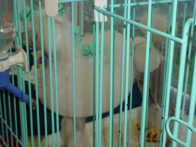Это фото знаменитой Фу-Фу ( я просила, чтобы её вынесли мне сфоткать)!Она сейчас на покое и подстрижена вмодерн.Они даже ошейник стразовый одели для такого случая.Ей сейчас где то около 8 лет,но мне показали еёребёнка изпоследнего помёта. Я её сфотографировала тоже, но мордель заросшая ( фото не удачное). |