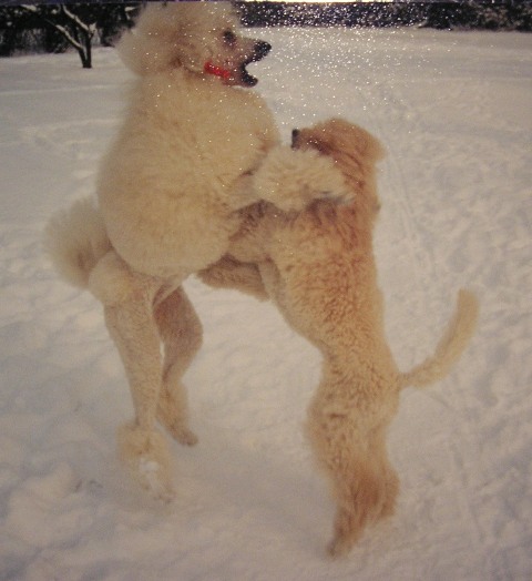 А если не отвликаться от темы о блондинах, то вот Тетя Норма и малышка Коко пять лет назад резвятся на белом снежке! |