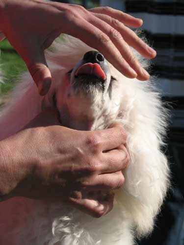 Грива и топ уложены в типичной японской манере, тут все профи так укладывают тоев :) Корейцы и китайцы толпами учатся тут в грумшколах и потом стажируются у мастеров.... Поэтому и манера укладки такая же :) |