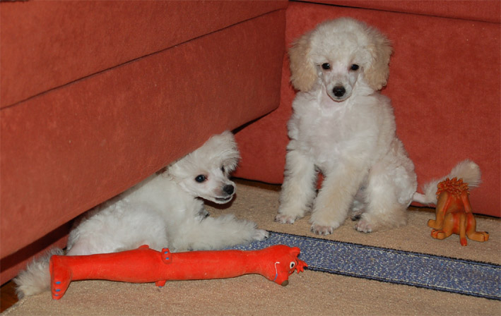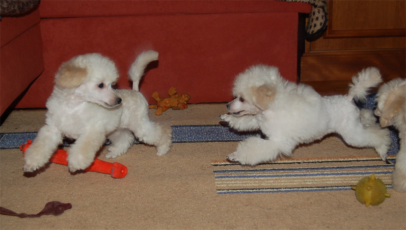 Хорошо, что они у вас - малютки, а представляете себе такую же игру 8-ми 2-х месячных щенков стандартного пуделя??? Называется - "спасайтесь все, кто может!"