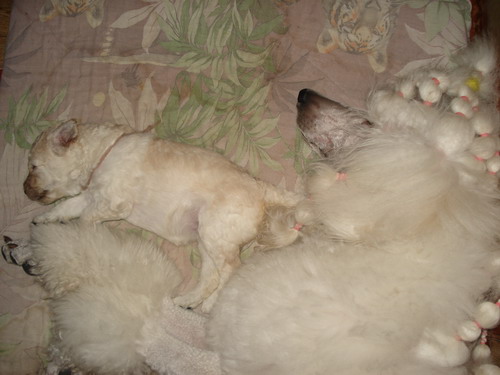 Зяма! Здорово! Малыши играют в кучу, прыгают по голове у Розовой --- а она спит....пробежались по ней всем семейством --- а она спит!!! Обожаю таких детишек!!!