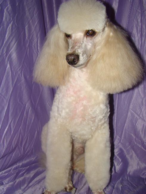 Этот мальчиша происходит от "Мичуринской"вязки белого кобеля и абрикосовой маман Зато мордахой напоминает своего деда ( Моя Отрада Зефирчик)Вот такая впечатляющая народная самодеятельность ,а может