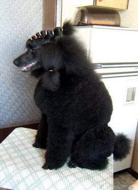 Красавец! А чего голову-то не подстригла - вот бедный пес в таком возрасте мучается с этими резинками....?!