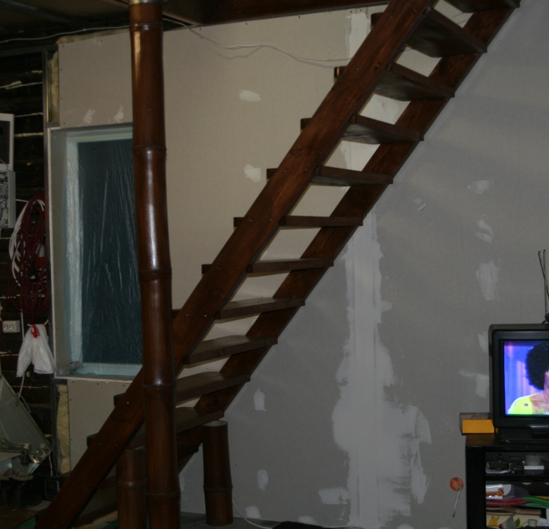 Ступеньки покрыты лаком, но только в один слой. Мне в носках ходить немного скользко, а босиком - нет. Триш бегает туда-сюда, её ничего не смущает... Вика, но раз она начала подчиняться, значит это вопрос времени? Раньше, когда на этом месте была старая лесница, она была вообще крутая, но с закрытыми ступеньками и ширина проступи (место, куда ставят ступню) была очень маленькая - сантиметров 12. Триш умудрялась забираться и по старой. Она когда спускалась по старой лестнице, попа была практически вертикально. Тришку и это не останавливало. У этой лестницы угол наклона удобнее и ширина проступи 20см. Я подумала, раз одной собаке не скользко, значит вторая просто филонит или боится.