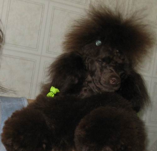 Угу... От БатыЯ..... Интересненький такой пометик получился. У нас тут в славном граде Житомире проживала уже почти критического возраста коричневая малая пуделица. Но очень красивая. И совершенно незнакомых кровей. Немцы за ней. Чистые немцы фээргешные еще. Была, оказываеться, в военном городке в Житомире пара вывезенных собанек, котрых как-то между собой пару раз поженили. Ну мы эту душку, 100%-но малую суку, повязали сыном Секстры и Мартина, Мэджиком. Напредмет проверить, не потянул ли он мамы Секси коричневй ген. Оказалось - не потянул. Весь помет получился черный, но очень стильный. И совершенно неожиданно в этом помете образовалось два карлика - сука и кобель. Вот эту суку Батыём и повязали. Получился какой-то неприличный инбридинг на Мартина, но помет расщепился интересною Два черных щенка, кобели - карлик и немелкий малый. И два коричневых - карликовая средняя девчушка и очень -очень мелкий кобель, просто клоп..... И все - как под копирку слепленные по типу... Прикольно :)