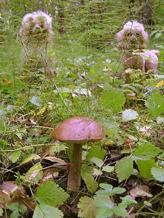 Но иногда я первая видела гриб и жутким рычанием заставляла собак замереть не доходя до него. Примерно так - тут Тиня (Фотиния) и Теша (Утешка).