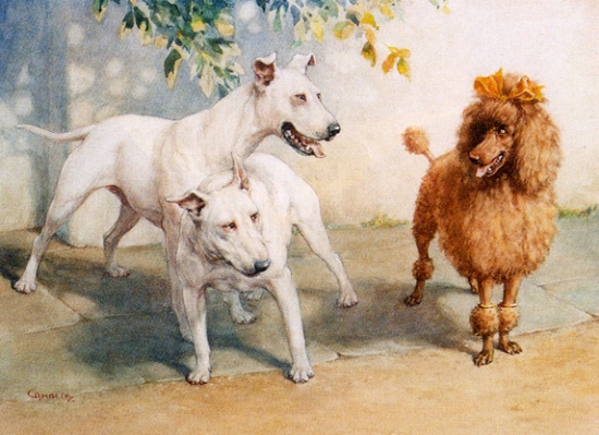Не помню как называлась тема - пудели и бойцовые собаки...