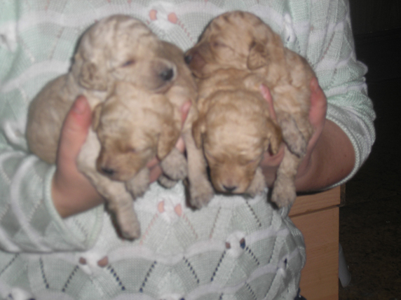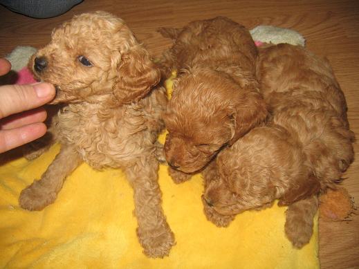 Мало того,что моя затянувшаяся простуда плавно перешла в воспаление легких,так ...последние пометы моего разведения неприятно удивляют.Начну с того,что ну почти все Джутовские дочери,и даже коровушки,от Лаврюхи СИЮ в помете давали хотя бы одного тоя.Я так надеялась на некрупную тойку Симону Синьеру Из Ворожеи тоже дочку Джута(Джу Тик Так ЧР),что она от Лаврюхи даст минимум одного тоя.......и чё.........Щеники родились мелкими -две девки и пацан(а мелких новорожденых от Лаврюхи я и не видала...)Тут от радости губа у меня и раскаталась..........Вчера с трудом выбираюсь на актировку щенков .......и........,меня встречают три лаптя.......кажный размером почти в полмамы.У меня пропал дар речи............А красноабрикоса получилась самая телушка.....,если не коровааааа,а была самой маленькой...Мои ученицы хихикают над размерами новоиспеченых тоёв...Ну,если не везёт,то по полной программе........и серые тои родились четыре кобеля и одна девка(я уже не знаю ,куда девать этих голубых кобелей),а белых карлу и тоя я до сих пор продаю(им почти пять месяцев)...ну....вааще...показываю фоты лаптей _______________________________________