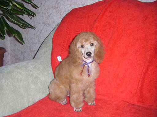 К сожалению, фото не очень удачное, он очень вертлявый и совсем не хотел стоять. Хотя мне оооочень понравился и я думаю, что у него большое будущее. Марина, отличного сыночка вы родили!!! Поздравляю!!! Очень стильная собака, в ринге сразу обращает на себя внимание.