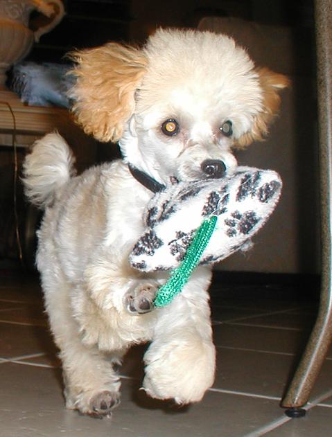Я пыталась подружить пуделя с попугаем...Но они кусаююются... С черепахой у него лучше получаетя