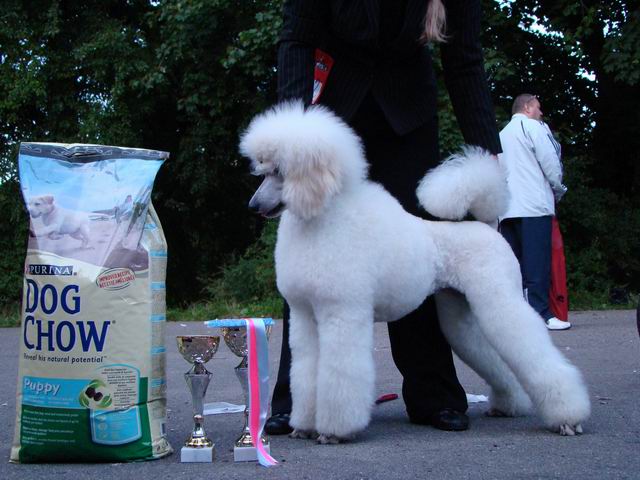 Итак, свершилось! 24.08.2008 года! Если бы вы только знали, как мы молились, чтобы в этот день не было дождя!! И, о чудо, наши молитвы были услышаны! Хотя всю неделю дожди лили почти без перерыва.... в общем.... Калиниград, стадион "Пионер", всероссийка "Балтийское лето 2008", заявлено 13 пуделей на выставку пришли лишь 11....