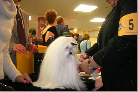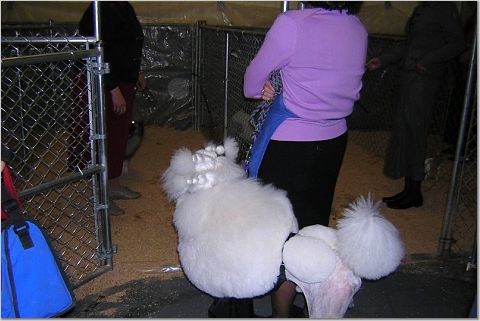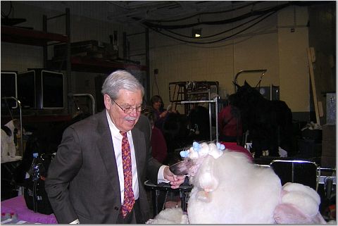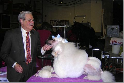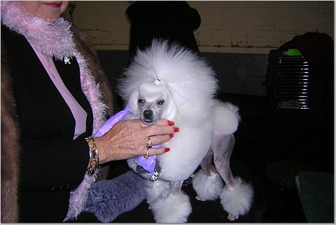 Я и на маленьких трогала, все давали, главное - расположить к себе людей. К ОЛе тоже народ ко всей душой, главное еше неплохо знать английский и не забывать улыбаться,тогда получается хорошее обшение . Оля сказала Казу, что учится стричь пуделей, и попросила посмотреть. Я попросила его поставить собаку на столе , чтобы сделать фото и разместить его на русском сайте.Он передал всем русским пуделистам БОЛ"ШОЙ привет. Тут прибежала хозяйка той пуделя ,я ее тоже сфотографировала. LioudmilaSherman добавил(а) [date]1139979529[/date]: WЕстминстер выиграл цветной бультерьер "Руфус", я довольна, "болела" за него еше на Чемпионате AKC/Eukanuba