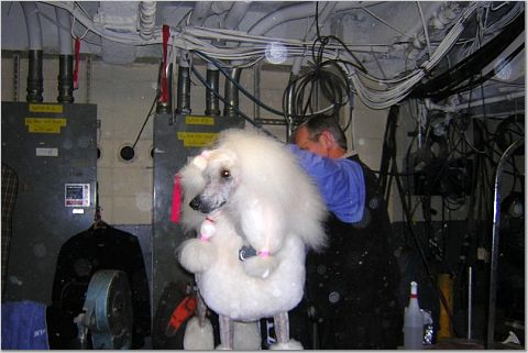 Интересно, можно подготовить голову пуделю на Wестминстере, когда вокруг тебя любопытные, причем, такие, которые даже своих собак готовят, не глядя на них, а глядя на чужих