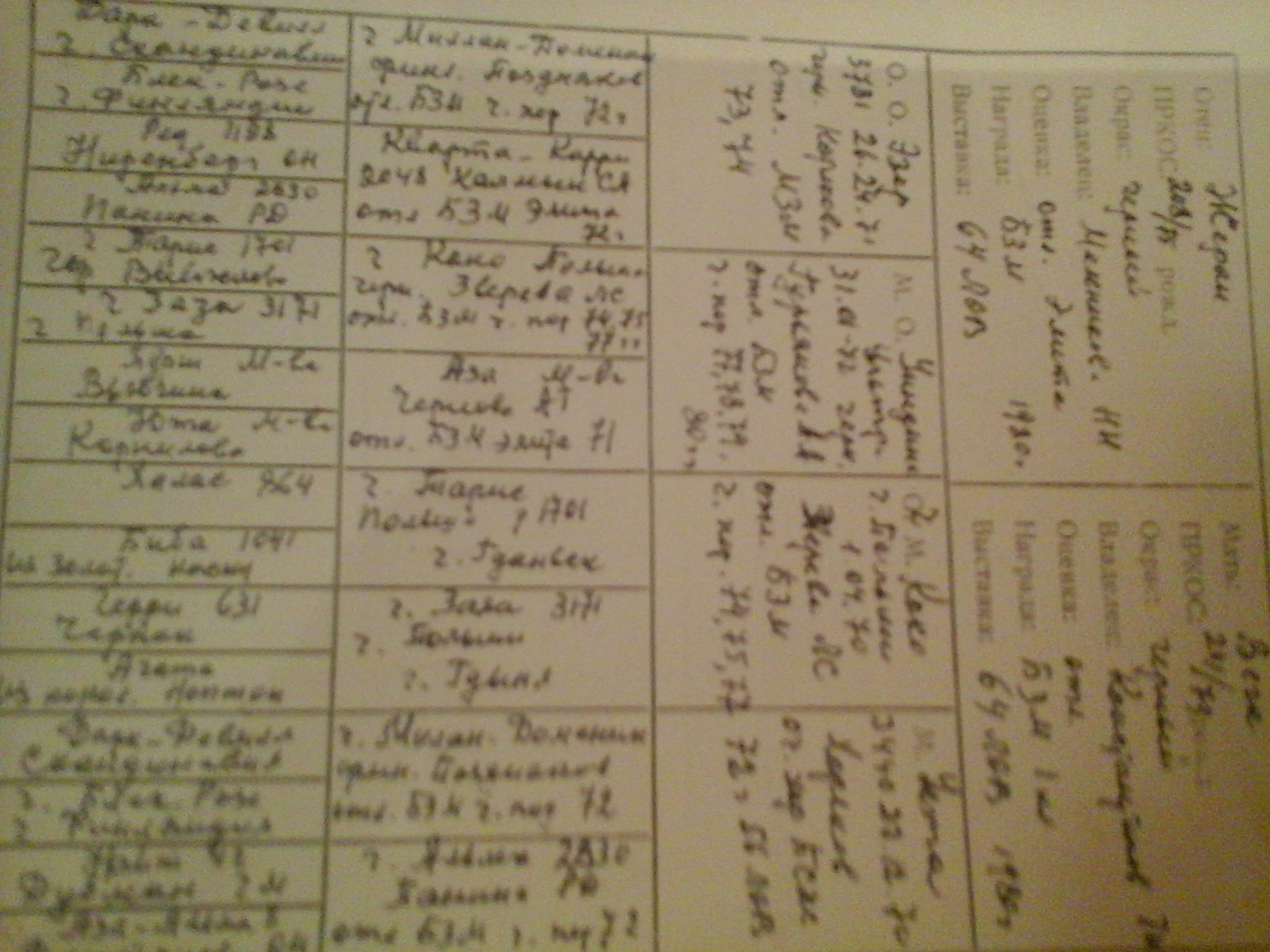 В учетную карточку заносились все однопометники и все результаты выставок: