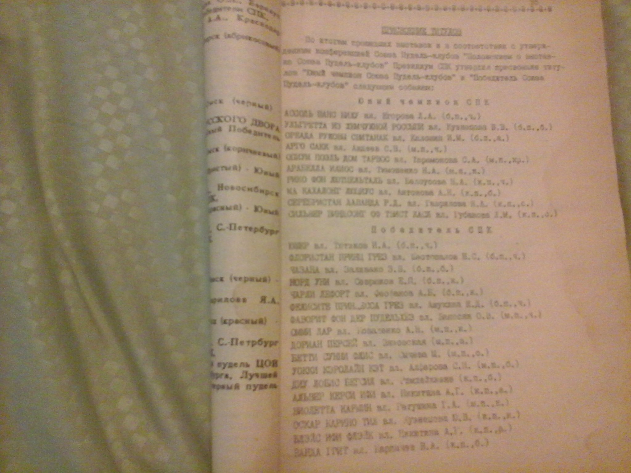 Титул ЧемпионСССР присуждался собаке дважды выигравшей в классе Победителей. Единственный большой пудель получивший звание Кандидат в Чемпионы СССР был Ерей Глюк. Последний раз редактировалось LioudmilaSherman; 17.11.2013 в 01:49. |