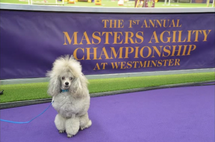 Серебристый той-пудель Томми в соревнованиях по аджилити на Вестминстере 2014, видео: https://www.youtube.com/watch?v=Ezm8ka7Xz3Q