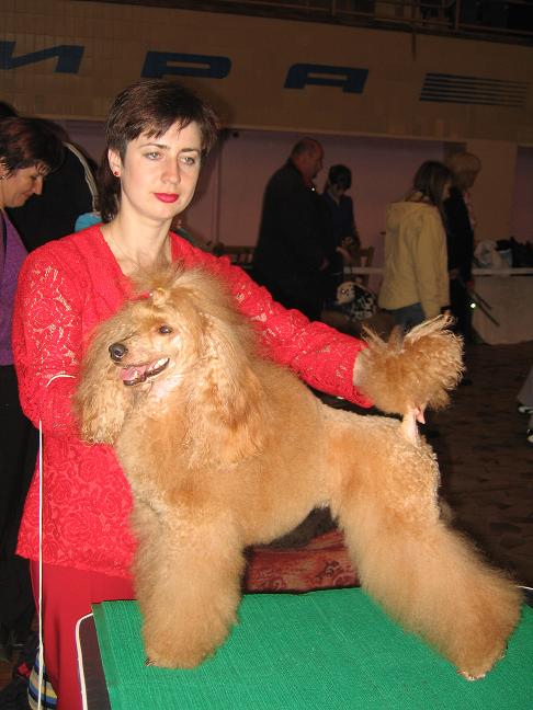 Для меня светлый абрикос (золотистый блестящий на солнце чудесный цвет) не менее красив чем тёмный, а если взять ещё и качество всего остального, то уж совсем "смешно" становится. ... Правда слава Богу приезжают к нам судьи которые это всё видят ... Из 7 CACIB Санник трижды занимал места в группе и практически не было пуделиной выставки, чтобы он не вошёл в расстановку BIS.... Можно только надеяться, что когда-будь и ФЦИ стандарт будет более логичным, тогда не надо будет красить, обесцвечивать, скрываться и т.д ... Tania Libkind добавил(а) [date]1146481315[/date]: Цитата:
